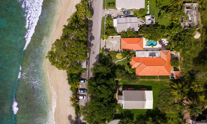 Luxury West Coast Villa (red roof!) opposite the beach and the famous Fish Pot Restaurant in Little Good Harbour. Barbados charm at its best.