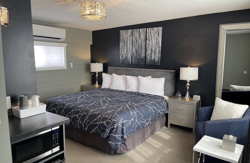 This Suite features a queen bed, full bath, hair dryer, iron, WiFi, Netflix & YouTube TV on a 49” screen. Checking in is a breeze with keypads.