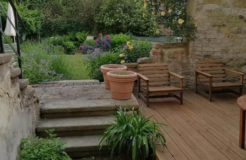 Food & DrinkTea/Coffee maker, Bottle of waterBathroomTowels, Shower, Toilet paper, Bathtub or shower, Hairdryer, Private bathroom, ToiletMedia & TechnologyFlat-screen TV, TVKitchenDishwasher, Kitchenware, High chair, Wine glasses, Electric kettle, Oven, Coffee machine, Dining table, Refrigerator, Stovetop, KitchenetteLiving AreaDining area, Sitting area, SofaGeneralKey access, Heating, Private entrance, Smoke Alarm, Tile/Marble floor, Trash cans, SoundproofBedroomLinens, Wardrobe or closetOutdoorsOutdoor furniture, Outdoor dining areaAccessibilityEntire unit located on ground floor, Upper floors accessible by stairs onlyBuilding CharacteristicsPrivate apartment in buildingRoom AmenitiesNon-feather pillow, Clothes rack, Socket near the bedViewQuiet street view |