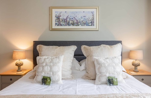 Our 'Nidderdale' bedroom is on the first floor andtastefully decorated in tranquil colours. Ithasbedside tables and built in wardrobes along with additional drawers and a dressing table. We want you to be comfortable and have the best possible chance of a good nights sleep. With that in mind,so you can unwind and relax in acomfortableTempur, Super King bed . We receive many guestcomments on the quality and comfort of the bed.
