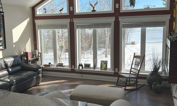 Escape and unwind at our modern bungalow on the beautiful Mira river. Get 10 acres all to yourself, while enjoying the convenience's of our cozy home. Located in Huntington Nova Scotia, just outside of Sydney this is the perfect place to bring the family and truly disconnect. Enjoy star gazing at the brilliant night sky, exploring the dense forest beaming with wildlife or some hot chocolate by the fire. The possibilities are endless with this spacious and private slice of Cape Breton.