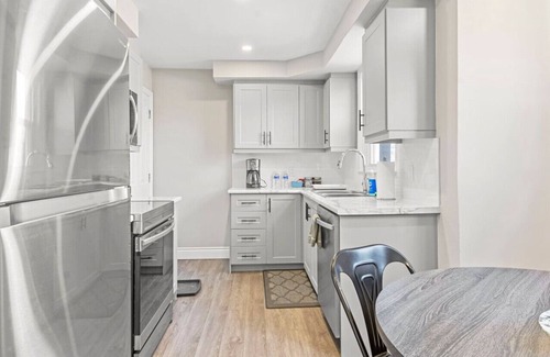 Access can be made by Hwy 403 (3 mins by car) or by the Burlington GO Station (2 mins by car/17 mins on foot). After arriving, take the front- or back-door entrance directly to the unit. Automated self-check-in is in place. Guests have access to all areas of this main-floor unit, plus two free parking spots on site. Normally, paid parking in this area can cost $20/night.