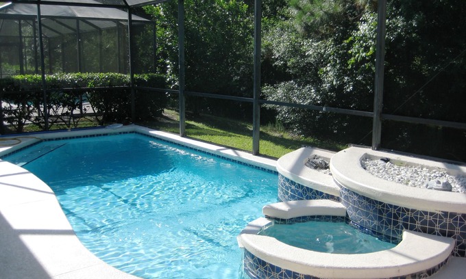 With 1700 sq ft of living space our villa has a large 25' SOUTH facing pool* with beautiful fountain feature that overlooks conservation land - so keep your eyes open for the wildlife that occasionally strolls or flies by!