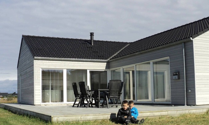 Modern, bright and very spacious holiday cottage with whirlpool located in a scenic holiday area with access to many exciting outdoor activities. The house was built in 2009, is 128 m² and has open concept kitchen/dining room, three bedrooms, two mezzanines, bathroom with whirlpool and sauna, guest toilet with shower and a large open terrace. The decor is modern and tasteful. The living room is large and bright with plenty of space. Because of the large windows in the living room there is plenty of natural light throughout the day, and there is direct access to the terraces. For indoor entertainment there is a combined card table with billiards, table football and airhockey, as well as Nintendo Wii. There are two TVs, both with DVD players. The wood-burning stove is used partly for cheap heating and partly to enjoy in the evenings. The terrace will no doubt provide a framework for many pleasant hours during the holidays. The plot is a large open plot with excellent opportunities for outdoor activities such as playing with the kids, sunbathing or evening fun around the grill. Holiday area at Tranum Strand with shared facilities With a few kilometres to the sea and beach, a scenic area ideal for hiking and in beautiful surroundings, a cottage area at Tranum Strand was founded in 2009. The area is designed for modern, busy families who want peace and quiet of the holiday, but at the same time would like to have the opportunity to enjoy the outdoors when the weather and the desire is to it. The holiday cottages in the area are almost all equipped with whirlpool, sauna, satellite TV with German channels and a modern interior in high quality. Each house stands on its own plot and access to the houses is via the small connector roads minimising driving in the area. The large common area in the middle of the area has the following activities, free of charge for all the guests in the area: Football golf with 9 holes Hiking and cycling trails which crossing the area Krolf arc with croquet holes (can also be used for mini golf) Soccer goals 7x7 m pavilion with barbecue hut Petanque court Huge sandbox Orchard with 150 fruit trees Swings, play tower, slide, playhouse, balance beam, spider net, seesaw Beach volleyball. When the weather is for trips to the beach, Tranum has a lovely sandy beach with clean water that receives EU quality label 'Blue Flag' year after year. From the parking lot to the water's edge there is a ramp so that wheelchair users also have easy access to the sea. Starting at Tranum Strand there is a relatively short distance to many of North Jutland's famous tourist places like Fårup Summerland, Blokhus, Aalborg Zoo, Aalborg Tower, Klitmøller windsurfer paradise, Bulbjerg's steep cliffs and the North Sea Science Park in Hirtshals. Do not forget to take a walk along the sea and buy a freshly caught fish directly from the cutter - there is still inshore fishing in the area.