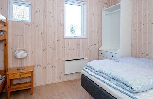 Layout: open kitchen(cooker(electric), hood, coffee machine, microwave, dishwasher, fridge-freezer), Living/bed room(TV(cable, german television channels, danish TV channels (DR1 and TV2)), high chair), bedroom(double bed), bedroom(double bed), bedroom(double bed), bedroom(double bed, 2x bunk bed), bathroom(tumble dryer, bathtub or shower, washbasin, toilet, washing machine), bathroom(bathtub or shower, washbasin, toilet), heating(electric), terrace, BBQ, air to air heatpump