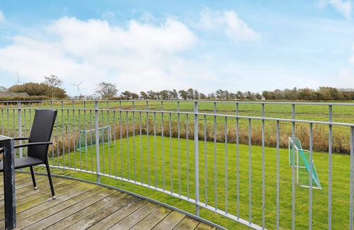 Layout: open kitchen(cooker(electric), hood, coffee machine, microwave, dishwasher, fridge(+ freezer)), Living/bed room(TV(cable, german television channels, danish TV channels (DR1 and TV2)), DVD player, Blu-ray player, radio, high chair), bedroom(2x single bed, children's bed), bedroom(2x single bed), bedroom(double bed, 4x bunk bed), bathroom(tumble dryer, bathtub or shower, washbasin, toilet, washing machine), bathroom(bathtub or shower, washbasin, toilet), game computer, Bubble bath(indoor, heated, 2 persons), sauna(indoor, heated, 2 persons), balcony, heating(electric), terrace, garden, BBQ, table tennis table, football goal, billiards, solar energy, air to air heatpump