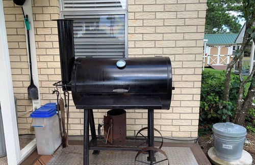 -- Fire up the large BBQ pit on the outdoor deck (just bring charcoal).