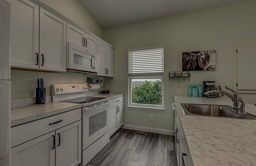 Coffee on the front porch, watching the sunsets, and being visited by the resident farm dogs. These are the top things guests enjoy during their time at this two bedroom farmhouse style cottage.