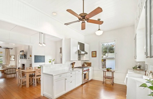 Without compromising the authenticity of this traditional Hawaiian home, we have updated it with tasteful modern amenities; split system air-conditioning in each of the bedrooms, updated kitchen with Subzero and Wolf appliances, wifi internet with Sonos sound system, HD TV, cable, HE washing machine and energy efficient water heater.