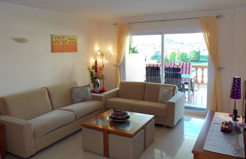 Our award-winning, comfortable and close to the beach apartment has about 100 m² total living space and is fully equipped with a high-gloss marble floor. It consists of 1 spacious living room / salon with dining area, 2 double bedrooms, 2 bathrooms (1 bathroom with shower and 1 bathroom with bath en suite), entrance hall, 1 large separate kitchen with dining and Spülwaschmaschine, utility room with WC, a 19 m² large south - facing west facing terrace with a fantastic view on the countryside and the mountains. In the gated community is located in the well-tended garden, a large communal pool with children's pool. Private sunbeds and parasol at the pool. The apartment is furnished with superior fittings and furnished top notch. An elevator takes you possibly from underground parking to the front door in. 1 Floor. The integrated air conditioning systems (hot / cold) as well as the high-tech infrared heaters installed in the living room in 2018 ensure pleasant room temperatures at all times. In the bedrooms are extra large fitted wardrobes and drawer units. The apartment has Isoverglasung, safe and satellite TV. There are only about 100 meters from the sandy beach and the beach promenade, which invites you to take long walks.