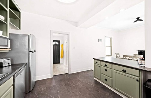 Guests will primarily be using the back door with a 4 digit code to unlock the door. No keys involved! There will be two parking spaces between the old garage in the back yard and the back of the house. Anything more than two vehicle will have to park on the street. Street parking is free and alternates sides every Sunday afternoon.