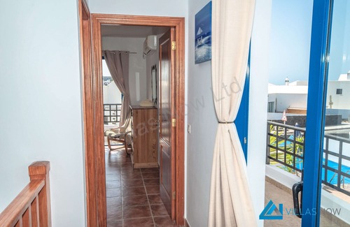 Villa Elise is in the highly acclaimed newly developed area of Playa Rubicon, close to Marina Rubicon. There are 2 bedrooms and 3 bathrooms and the villa has a private heated pool.Villa Elise is a modern 2 story villa with both bedrooms being upstairs. The master bedroom has a large king size bed and doors leading out to the upper terrace with its table and chairs from where you can sit and relax and watch the sun set. The second bedroom is a twin room with ensuite. Both bedrooms have air conditioning units which can either be used as cooling, heating, dehumidifying etc (the A/C units work on a coin operated system). This room also has doors out to the upper terrace area. Downstairs the kitchen has all the modern appliances you would expect in a modern property, that has been beautifully set out to make you instantly feel at home with a dishwasher, washing machine, microwave, oven, ceramic hob, fridge freezer, glassware, cutlery and crockery; are all included. The kitchen has separate glass doors and shutters that lead straight out to the BBQ area. There is a good size lounge with 2 comfortable sofas, and again air-conditioning, should it be required. When seated in the villa you can see out to the pool area and keep an eye on what is happening, or if you prefer there is a wide screen television to watch. The villa has satellite television with a good selection of channels. There's a DVD player (DVD's not supplied) and the villa also benefits from FREE WiFi internet accessOutside there is a South facing sun terrace with private heated pool. There is also seating for up to 6 people for those evenings in and around the BBQ.From the villa's location it is about a 5 minute walk to the nearest beach and just around the corner from there is the start of a magnificent promenade which offers fantastic views and tranquil walks along the front all the way through the Marina Rubicon with its amazing selection of bars, (Live music most nights) restaurants and shops. There is also plenty here to do with the kids, Mini golf, parks, the community swimming pool. and onto the centre of Playa Blanca.In the opposite direction to the promenade are the world famous Papagayo Beaches which on foot will take about 20 minutes to reachAbout a 5 minute walk from the villa is a Supermarket, and Taxi rank so shopping could not be easier for a self catering holiday.This is an ideal location for families, couples or small groups of friends. It is close enough to all essential amenities not to make a car a necessity, but far enough away, not to be disturbed by any of the local night life.____Additional Villa Information:Air Conditioning where available is coin-operated. Pre-payment options are available, please ask for details.Towels and linen (Including pool towels) are included. All payments are taken in GBP and a £7.50 per person per stay Breakages Insurance will be included in your villa cost.For a full list of our FAQs and other useful information including airport transfers, check out the Discover section in the website >> https://www.villasnow.com/discover/faqs-useful-information/