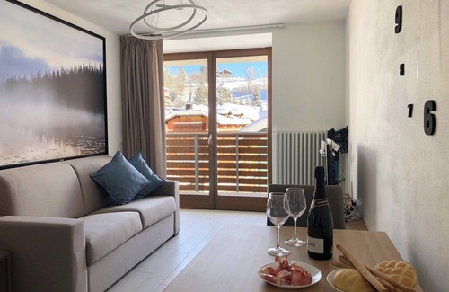 Cozy apartment of 37 square meters, ideal for accommodating up to 4 people. It consists of a double bedroom, a living room and lounge with large TV and double sofa bed, a kitchen equipped with everything you need and a bathroom with shower. Located on the first floor, it has a large balcony perfect for enjoying the splendid views of the village, the woods and the surrounding mountains. The apartment is equipped with all the comforts to ensure a practical and pleasant stay: bed linen and towels included, foam bath, shampoo and conditioner, hairdryer, safe, dyson vacuum cleaner, microwave oven, induction hob, waffle coffee machine, toaster, kettle, pots and crockery. Everything you need to feel at home, in a welcoming and functional environment, ideal for relaxing and comfortable holidays.