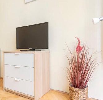 Food & DrinkTea/Coffee makerBathroomShower, Hairdryer, Walk-in shower, Private Bathroom, Bathtub or shower, Towels, Toilet paper, Toilet, Guest bathroomMedia & TechnologySatellite channels, Flat-screen TV, TV, Cable channelsGeneralTrash cans, Hardwood or parquet floors, Ironing facilities, Heating, Fan, Fire extinguisher, Iron, Smoke AlarmKitchenWashing machine, Toaster, Dining table, Cleaning products, High chair, Kitchenware, Stovetop, Coffee machine, Refrigerator, Electric kettle, Kitchen, MicrowaveLiving AreaSofa, DeskBedroomWardrobe or closet, LinensRoom AmenitiesSofa bed, Drying rack for clothing, Socket near the bedAccessibilityAccessible by elevatorViewInner courtyard view |