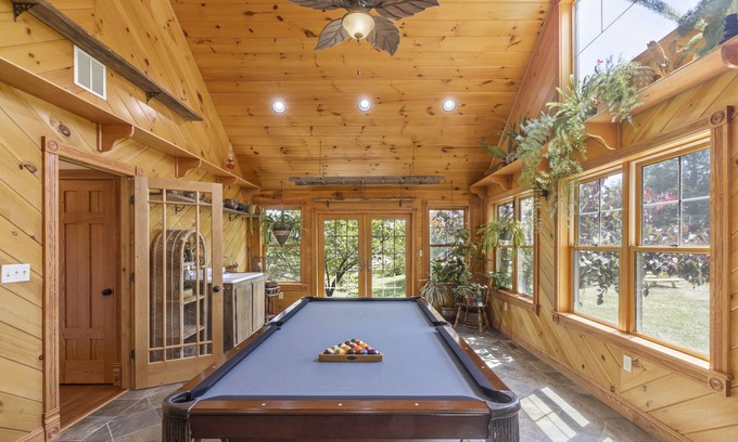 → sunroom with a high-quality 8' Olhausen table and those awesome Brunswick Centennial balls. The half bath is in the hallway between the kitchen/dining room and the sunroom.