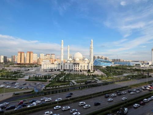 12эт ТОП ЛОКАЦИЯ посольство США до 6 гостей с 2мя кроватями, диваном и 2мя санузлами в Хайвилле is located in Astana, just 2.3 miles from Palace of Independence and 2.6 miles from Hazrat Sultan Mosque. The air-conditioned accommodation is 6.8 miles from Expo 2017 Astana. Free Wifi is available throughout the property and Bayterek Monument is 4.7 miles away. Offering a balcony and city views, the spacious apartment includes 1 bedroom, a living room, cable flat-screen TV, an equipped kitchen, and 2 bathrooms with a bidet and a bath. Towels and bed linen are offered in the apartment. The accommodation is non-smoking. Palace of Peace and Reconciliation is 3 miles from the apartment, while Kazakhstan Central Concert Hall is 4 miles from the property. Nursultan Nazarbayev International Airport is 11 miles away.