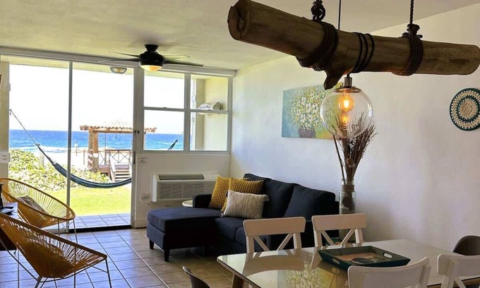 This listing is for our Beach-front Apartment with two bedrooms and two bathrooms in Haudimar Beach Apartments at Jobos Beach, Isabela. The apartment stands out from others because of its prime beachfront location with an unobstructed view of the beach. This first-floor apartment accommodates up to five guests comfortably.