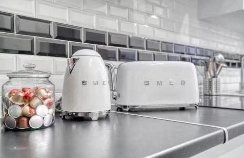 BathroomToilet paper, Hairdryer, Shampoo, Towels, Body soap, Bathtub, Towels/Sheets (extra fee)GeneralHardwood or parquet floors, Iron, Heating, Ironing facilities, Trash cans, Smoke AlarmKitchenDining table, Kitchen, Stovetop, Oven, Washing machine, Wine glasses, Dishwasher, Coffee machine, Toaster, Electric kettle, RefrigeratorLiving AreaDeskMedia & TechnologyFlat-screen TVRoom AmenitiesSocket near the bed |