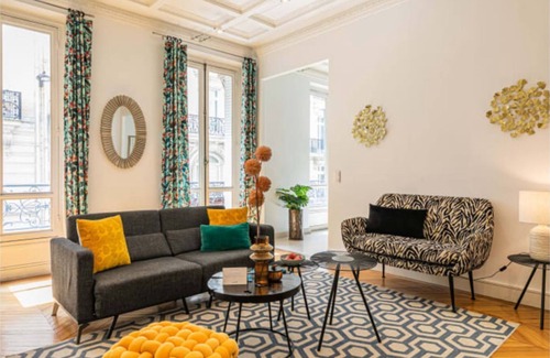 Nestled in the prestigious Champs-Elysées neighborhood, this cosy two-bedroom apartment exudes Parisian glamour. Transformed by a local interior designer, it offers a comfy retreat to revitalize. Huge windows and cushy furniture create a homely ambiance, while a blend of antique parquet flooring and modern decor captures Parisian contemporary style. The fully equipped kitchen invites culinary adventures. Immerse yourself in the lavish surroundings of the VIIIth arrondissement, with historical landmarks and high-end designer stores. Take a leisurely walk along the iconic Champs-Elysées to admire the Arc de Triomphe. Premium amenities include free WiFi, cable TV, plush beds, luxury toiletries, and a Nespresso machine. Ideal for families and groups seeking a spacious Parisian getaway.