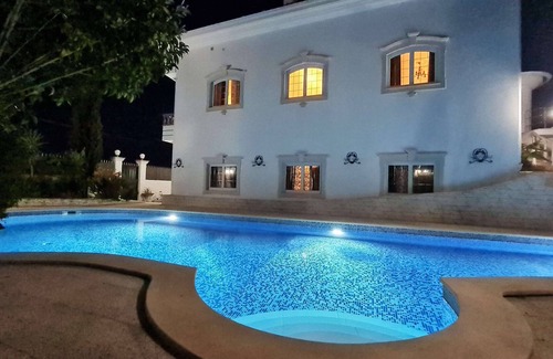 Located in Leiria District,10 minutes between Nazare & Leiria. The new Luxury Villa, (1300.00 sqm2 ), features a 22 meters swimming Pool,/2.2 m. deep/,GYM,Poolside Bar with a sound system 25000 Watt for events & party, free parking & free WiFi throughout . Two big Supermarkets just a 2 min. away.12 beaches ,(Silver Coast ), just a 10 min.away from us. The New Luxury Villa ( 1300 00 sqm 2 ,3 floors with 13 rooms and 3 Kitchens , Living HighEnd Cinema & Music Hall with a fireplace & Terraces, are designed for the accommodation of 25 -50 Guests.