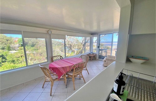 Sleeping arrangements include 2 Double beds, 2 single bunk beds, 2 single beds, 1 single fold out bed. One bathroom upstairs. Outside shower and outdoor toilet downstairs. Spectacular views of the Nambucca River and Pacific Ocean. You could not ask for more!