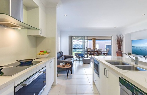 There is a large open plan, modern living area with a huge Smart TV with Foxtel, Netflix, Stan, and free unlimited Wi-Fi. A second TV area with a smaller Smart TV and comfortable lounge to sit back and relax. The dining area has a beautiful round dining table with a lazy susan insert, which makes this an easy dining experience.