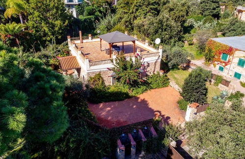 Single villa with 700 m2 of garden, fenced with remote controlled entrance door for cars. The garden has important tree species and flowers, at night it is suggestively illuminated. Outside there is a large gazebo, 4 x 4 meters, and a large barbecue, about 2.50 ml, under the gazebo there is a table in Sardinian granite, in this area you can access directly from the kitchen with a large and practical balcony covered by wooden roof, 2012 huge terrace with sea view (200 meters) and another gazebo and lounge. Inside there are two bedrooms, one with a direct bathroom, and a bedroom, and another bathroom that also serves any guests, American kitchen with sliding glass door decorated by the master painter Mario Aubry known exhibitor at the Palazzo dei Ferrara diamonds; living room furnished with modern style and high quality furniture, with sitting area with large color TV. Fully air conditioned with two inverter air conditioners.