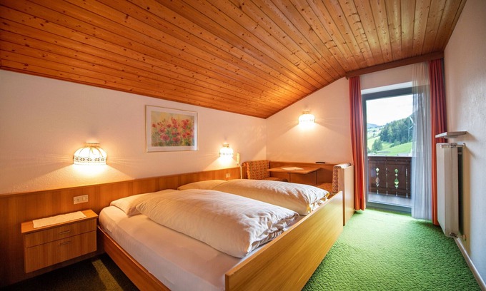 Comfortable room with bathroom and balcony for up to 2 people.The room is furnished in a rustic style and has a bedroom with a double bed and a bathroom with shower.The room is equipped with satellite TVRoom guests can enjoy the large garden of House Alara.Wi-Fi, towels and bed linen are included in the price.Important information: According to recent provincial law this apartment can accommodate a maximum of:- Adults (from 14 years): 2- The remaining beds can only be occupied by children up to 13.99 years of age at the time of departurePlease note that this law is subject to strict controls by the competent authority and violation of it results in substantial fines. For this reason, no exceptions will be possible under any circumstances.Apartments Alara offers traditional style accommodations, few minutes drive from Ortisei away. The house comes with two apartments and 4 bedrooms equipped with all needed for your stay. The position is set in the fraction of Ortisei called Roncadizza, which is located approx. 2 km from the town center away. It is possible to reach the town center and the lifts in different ways, like in few stops by free bus and ski bus (they stop 100m away), in few minutes by car or bike or in 30 minutes walking. It is a particular family friendly area, as there are two children playgrounds, horse riding, tennis and beach volley courts within 200 m from the house. In the same range you also find the first bars and restaurants. Apartments Alara offers a wonderful furnished garden, in common for both apartments, where you can relax under the Dolomites’ sun. The property also offers free daily access to the MAR DOLOMIT public swimming pools and free use of the nearby tennis courts (on reservation). Outdoor parking, Wi-Fi and ski room with boot heater are available.Apartments Alara is the cozy and comfortable solution you were looking for in Val Gardena!Check-in: 15:00 - 19:00 at MUSE.holiday office in Via Arnaria 9A, OrtiseiSome houses have remote check-in at the house with code access, we ask you to contact us about this at least 48 hours in advance to check if the house you have booked is among them.Check-Out: In person from 8:00-9:00 at MUSE.holiday office in Via Arnaria 9A, Ortisei (except houses with code access)Not all houses allow pets. To avoid misunderstandings, we ask you to inform us by separate mail if you intend to bring them with you. In houses where pets are allowed, there is a surcharge of € 15.00 / animal / night. Baby cot, high chair and cot rail are available for a fee and must be booked in advance.Check-In after 7 p.m. only possible with prior notification by 6 p.m. day of arrival and upon submission of required documents and payment of tourist tax + extras by credit card for check-inHeating is on from October to April (during this period the heating is not on if the outside temperature exceeds 15°c or if the inside temperature reaches or exceeds 21°C)Charging of electric vehicles or other storage devices not permitted, unless otherwise stated in the advertisement. If allowed, it is available only after reconfirmation by MUSE.holiday and at a variable extra cost.In case of wasted electricity, gas or other utilities there is an additional cost (e.g.: lights on all day in the absence of guests, heating running with open windows).It is duty of the guests to open the windows at least twice a day, once in the morning and once in the evening, for at least 5 minutes each, to let humidity exit the apartment and avoid mold formation. If this rule is not respected and mold is found upon departure of the guests, costs to restore the apartment integrity will apply.Due to the geographical location, Wi-Fi may be interrupted or slowed down, so this service is not always guaranteed.The house is not equipped with foodstuffs such as cooking spices or various consumables such as shampoo, soap, etc... Any consumables present are intended only as a welcome kit and will not be refilled during your stay.The payments required to enter the flat are the tourist tax + pre-authorization through SWIKLY of the security deposit by credit card of 500€.If not previously agreed, the physical keys, the benefit card and other accessories provided at check-in are to be returned to the MUSE.holiday office in Via Arnaria 9A in Ortisei, otherwise 50€ will be charged for key collection.The final cleaning amount covers a standard cleaning only. It does not include the washing of the dishes and the removal of trash from the apartments to the indicated spots. Therefore, excessively dirty apartments, dishes not washed, and trash not removed will be amended with a variable extra fee, basing on the entity of the working hours surplus.Important: We are partnered with SWIKLY – the leading vacation rental deposit provider. Before the check-in starts you will have to obligatory proceed with the online payment of the deposit, nothing will be deducted from your credit card, pre-authorized, or blocked. This will not even affect the limit of your credit card!