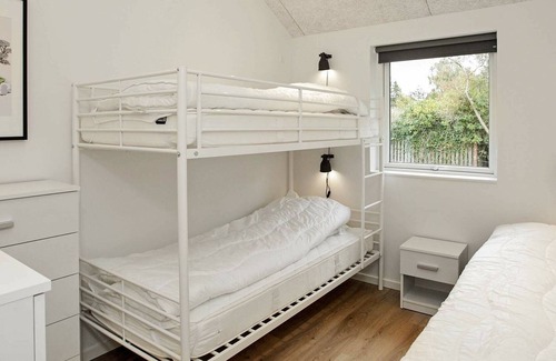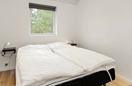 Layout: Pool house: open kitchen(cooker(electric), hood, coffee machine, microwave, dishwasher, fridge, freezer(140-199L), fridge-freezer, tumble dryer, washing machine), Living/bed room(TV(german television channels, danish TV channels (DR1 and TV2)), DVD player, CD player, stereo unit, high chair), bedroom(double bed, children's bed, children's bed), bedroom(double bed), bedroom(2x single bed), bedroom(2x single bed), bedroom(3x bunk bed), bathroom(floor heating)(bathtub or shower, washbasin, toilet), bathroom(floor heating)(bathtub or shower, washbasin, toilet), bathroom(washbasin, toilet), mezzanine(3x single folding bed), game computer, sauna(6 persons), terrace, terrace(roofed), garden, BBQ, play equipment, darts, football goal, billiards, fish cleaning table, geothermal energy, solar energy, air to water heatpump