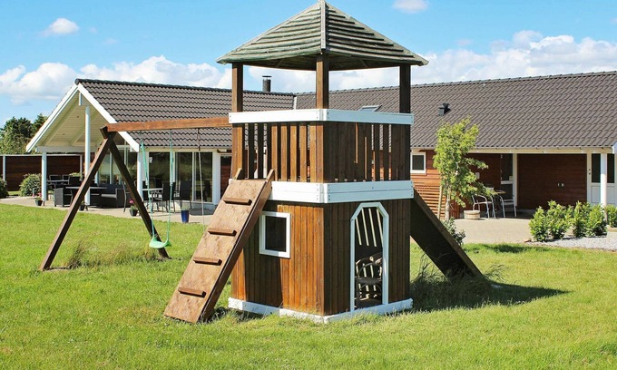 Skanlux holiday cottage with an extra large activity room and a lot of activities. There are 2 bathrooms in the house, one of which has a 4-6 person whirlpool and sauna. There is underfloor heating in the bathrooms. In the 35 m² large activity room you can get a good game of billiards and then a game of table tennis or table football and a game of darts. There are DVD and PlayStation and cable TV. The crackling fire from the wood-burning stove can be enjoyed indoors. The kitchen is well equipped with all appliances. The house is equipped with a cot and high chair, and outdoors there are swings and a play set. The plot is approx. 1756 m², so there is plenty of room for the children to play. Moreover, there are 124 m² terrace and 18 m² covered terrace for barbecues and sunbathing and relaxation. Due to the size of the house the price for final cleaning deviate from the normal listed price. No letting to youth groups. NOTE: Mini break in E season cannot be booked until 28 days before arrival.A refundable deposit might be charged closer to your check-in date. Thesecuritydepositensuresasmoothstayandcoversany additionalservicesorconsumptioncharges.Thisdepositcoversutilitiesconsumedduringyourstay andanyadditionalservicesthatmaybetaken.Thefinalamountwillbeadjustedbasedonactualmeter readings,actualusageofextraservices,andanyremaining balancewillberefundedwithin21daysaftercheckout.Thisdepositsimplyactsasaprepaymentforchargesthat youwouldanywayspayfor,ensuringaseamlessstayand check-outexperience.