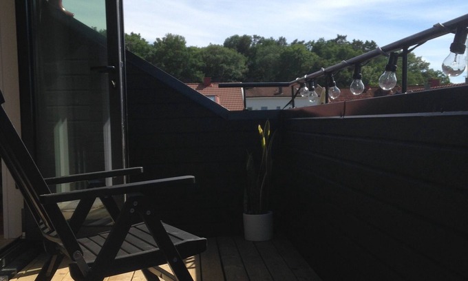 In the newly renovated attic there is a play / yoga room which also serves as an extra bedroom if needed. Large secluded newly built balcony in the eaves with views and afternoon evening sun. Garden with lawn, patio with table for 8 people.