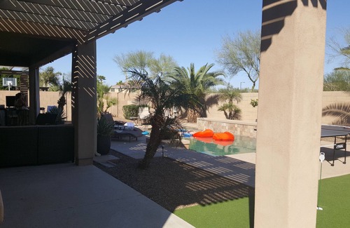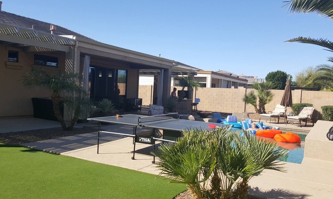 Great location, open concept 1st time rental with amazing outdoor space - heated pool, shuffleboard, putting area, ping pong table and plenty of area to enjoy the AZ sun. Must be 30 or older with verification upon arrival.