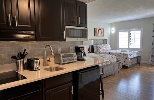 The best location in Orlando. Our Studio is completely renovated with a beautiful wooden floor, 2 Queen beds, 1 bathroom, fully equipped kitchen all brand new with everything you need for your stay. Do not miss an incredible vacation in a privileged place. In the heart of International Drive, an area full of restaurants, bars, shopping centers, and many attractions. Very near to Universal Studios, Convention Center, Sea World and a few minutes from Disney.
