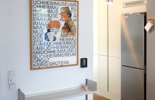 - 18 m² bedroom 2 with two single beds of 90 x 200 cm each, also with high-quality mattresses. One single bed can be converted into a sofa, if desired. There is a small desk for working. Please note that the photos were taken at a time when the owners still lived in the flat. Only one single bed is shown, the second single bed will of course be available freshly made up when you move in.