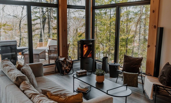 15min from Tremblant, modern work from home cabin is located in La Conception. 15min from Tremblant, modern work from home cabin provides accommodation, featuring Parking, Ocean View, Oceanfront, among other amenities. This Cabin features Parking, Ocean View, Oceanfront, to make your stay a comfortable one.