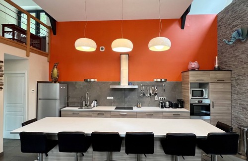 Designed to accommodate up to 16 people, this authentic barn, restored by a renowned architect from noble materials such as stone and wood, offers high quality services: