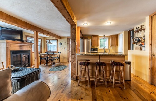 A warm and inviting space greets you as you enter the home into the kitchen. The kitchen features stainless steel appliances, a glass cook top stove, and granite countertops (please note that there is no d/w). You can enjoy the beautiful gas fireplace as you prepare meals and gather with your family and friends. Just off the kitchen is a full bath with tub/shower combo. Two more separate living areas, both tastefully furnished, provide enough space for the entire family to relax. A beautiful set of pine barn doors add an eclectic touch, and can be closed for privacy if the adults wish to gather in one space to chat and enjoy a glass of Finger Lakes wine, as the children play or watch a movie in the third living room.