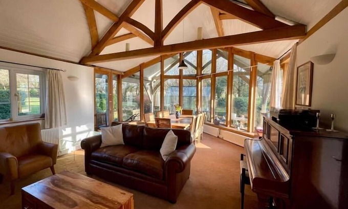 Relax with the whole family or a group of friends at this beautiful 17th century farm house - set in a large enclosed garden and surrounded by 30 acres of sheep grazing fields. Enjoy cosy evenings around the inglenook fireplace.