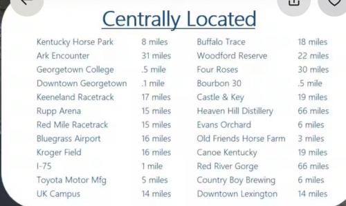 1880s Georgetown Jewel offers accommodations in Georgetown, 12 miles from Rupp Arena and 12 miles from Hunt-Morgan House. This property offers access to a patio and free private parking. Outdoor seating is also available at the vacation home. With free Wifi, this 1-bedroom vacation home offers a satellite flat-screen TV, a washing machine, and a fully equipped kitchen with a dishwasher and oven. Towels and bed linen are offered in the vacation home. For added privacy, the accommodation has a private entrance and soundproofing. Lexington Convention Center is 12 miles from 1880s Georgetown Jewel, while Lexington McConnell Springs is 12 miles from the property. Blue Grass Airport is 15 miles away.