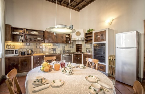 This beautiful, 190 square-metre flat is situated in an eighteenth-century building with high coffered ceilings and antique fired brick floors located in a lovely piazza in the heart of Rome. Ideal for families and groups of friends.