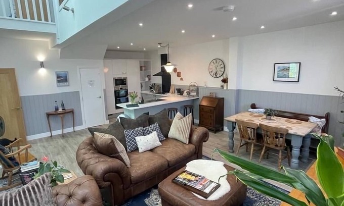 Spacious open concept family room with dining area, fully equipped kitchen and super comfortable lounge area. Gallery with desk, WiFi 51 mbps and power nearby. Reading nook and play area. Fantastic downs views. Private garden and parking. Please note no access to garden directly from chapel. Access through car park. Sumptuous beds and luxury bedding, comfy sofas and lots of added extras. Second to none welcome pack. Smart Tvs in lounge and both bedrooms, Alexa smart speakers also. Well equipped kitchen. Underfloor heating and feature gas fire downstairs, radiators upstairs.