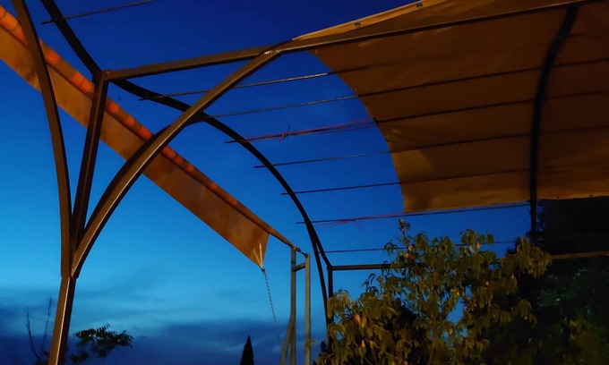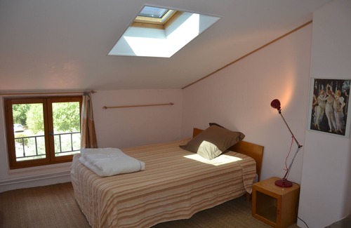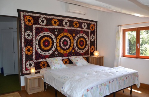 Just 5' walk from the medieval village of Séguret, large traditional country house, on the slope of the hill, with a large terraced garden going up to the forest, an outdoor pool, an exceptional open view on the 'Plan de Dieu' plain, a 100 sq.m. terrace in front of the house and a small one on the roof-top. Very comfortable and cozy, quiet, combining sunshine and trees shade. Very peaceful area, but not remote. A hiking path starts just in front of the house and goes straight in the forest. Wonderful sunsets. 5 bedrooms, nice living room and large kitchen-cum-dining-room, plus a play room for kids. Two bathrooms (one bath+shower and one toilet+shower) plus two separate toilets. An extra shower and toilet, and sauna, next to the swimming pool. The lower levels of the house stay very cool in Summer because it is built against the hill. There is air conditioning on the top floor. The kitchen is fully equipped. Wifi internet access, one iMac and a Netflix subscription are all on site. 10' by car from Vaison-la-Romaine, 45' from Avignon. Great for children, and to enjoy the real, original Provence, with full modern comfort. Very good bedding (3 beds in 180x200, 2 beds in 140x200, one child bed, 2 cots, possibility to add extra bedding if required), fully equipped. Linen and towels included. Cleaning included.