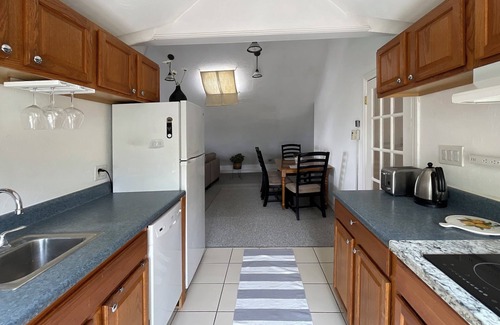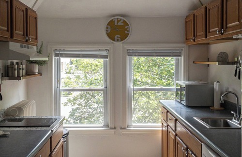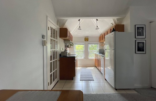 The apartment can accommodate two guests with its luxurious and comfy queen-size bed. You'll appreciate the special design touches and abundant sunlight. The kitchenette is equipped with a fridge, microwave, two-plate induction stove, toaster, coffee maker, and an instant pot electric pressure cooker.