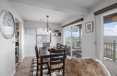 Less than 2 miles from Silver Dollar City and minutes from the Branson Strip and Table Rock Lake. You can expect an updated, fun, and clean place to enjoy at The Tree House. Sleeps up to 6. There's a master with one queen bed and a second bedroom with one queen, a top bunk and a twin pull out trundle! One of the best views of table rock lake to enjoy at the deck.! Outdoor Pool open May-Sept, and beautiful viewing area for your enjoyment!