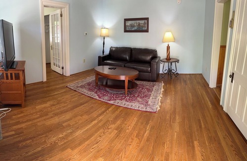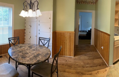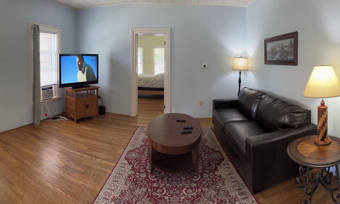 Excellent location! A private 1 Bedroom 1 Full Bathroom 1st floor apartment on the corner of Columbia & Church Street that sleeps four guests. There is a queen bedroom and a leather couch pullout sleeper sofa. We also have an air mattress if needed. You can park your vehicle in the carport or on the street. The washer & dryer are conveniently located in the basement.