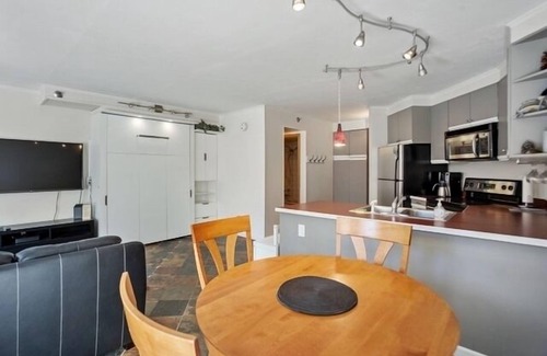Make yourself at home in this ski in ski out studio Winter Park retreat. This cozy condo features a Queen murphy bed, a living room with a futon, full size kitchen and bath, and convenient resort style amenities like hot tubs, pools, sauna, fitness center, laundry center and fast WiFi. After sking right home from a long day on the slopes, guest can unwind in the fitness or game room, enjoy the peaceful surroundings of the Rocky Mountains or book a visit with the on site wellness center! Winter Park STR license # 024830
