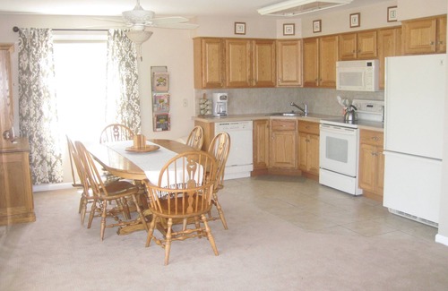 Enjoy your stay in a first floor Condominium with a spacious furnished front porch. Three bedroom(King, Queen and Trundle Bed), 1 full bath with additional sink in master bedroom and two outside showers. The kitchen, dining area and living room are an open layout conducive for family time.