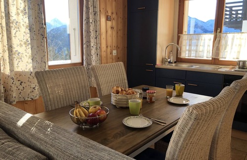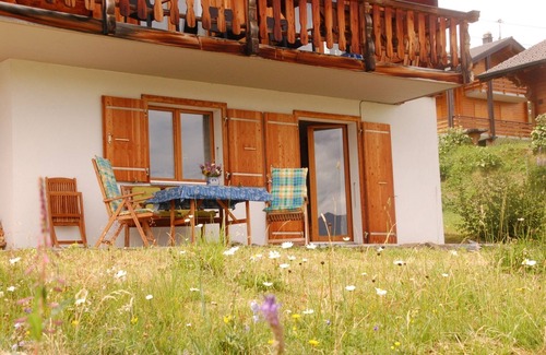 Our chalet is located directly on the slopes of the 4-Valleys ski region on a sun terrace at 1900 m. You can put on your skis on your doorstep and take off for about 100m to the piste of the Etherolla ski lift. The chalet is built in traditional form of larch wood and very comfortably and comfortably furnished. From our house you have a wonderful panoramic view of the Walliser Viertausender scenery - Dent Blanche, Zinnal Rothorn, Weißhorn etc .. You can rent the chalet (ground floor and first floor) and the apartment (in the basement) individually or together.