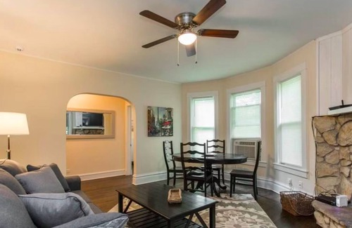 2 Bdr Apt - King Bed - Walk to Dwntwn Libertyville has 2 Bedrooms , 2 Bathrooms, and max occupancy of 7 people. The minimum rental for this property is 1 nights, but this can change depending on the season you plan on staying. Previous guests have given good rated it, and VRBO labeled it a top-rated Apartment because of the excellent services rendered by the owner or manager of this Apartment, and has consistently provided great experiences for their guests. Most families or guests that use it recommend it to their friends and some of them are repeat guests. Apartment has a friendly neighborhood, and the Libertyville has interesting places to visit. If you want to learn more about the Apartment in Libertyville, such as places to visit and things to do nearby, you can check below to learn more.