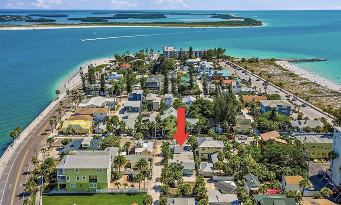 Located a mere 75 yards from either end of the street, you'll have the privilege of choosing between two breathtaking sights. On one end, indulge in the award-winning white sand beach, where you can lounge, swim, and soak up the sun to your heart's content. On the other end, immerse yourself in the beauty of the picturesque Pass A Grille Channel, where large, majestic pelicans gracefully glide through the air. It's truly a beach lover's paradise!